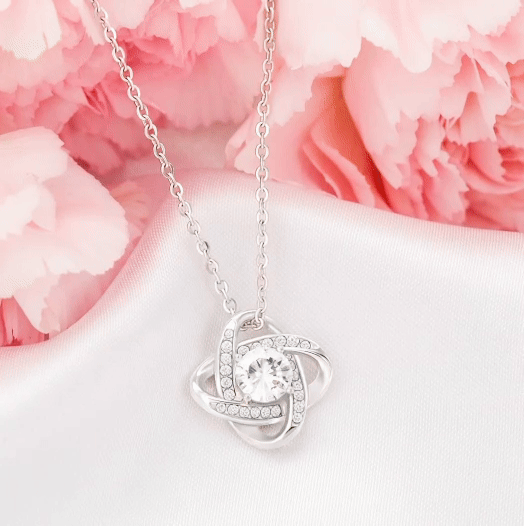 This necklace closes that gap. The love knot design is intertwined, just like the bond you share.